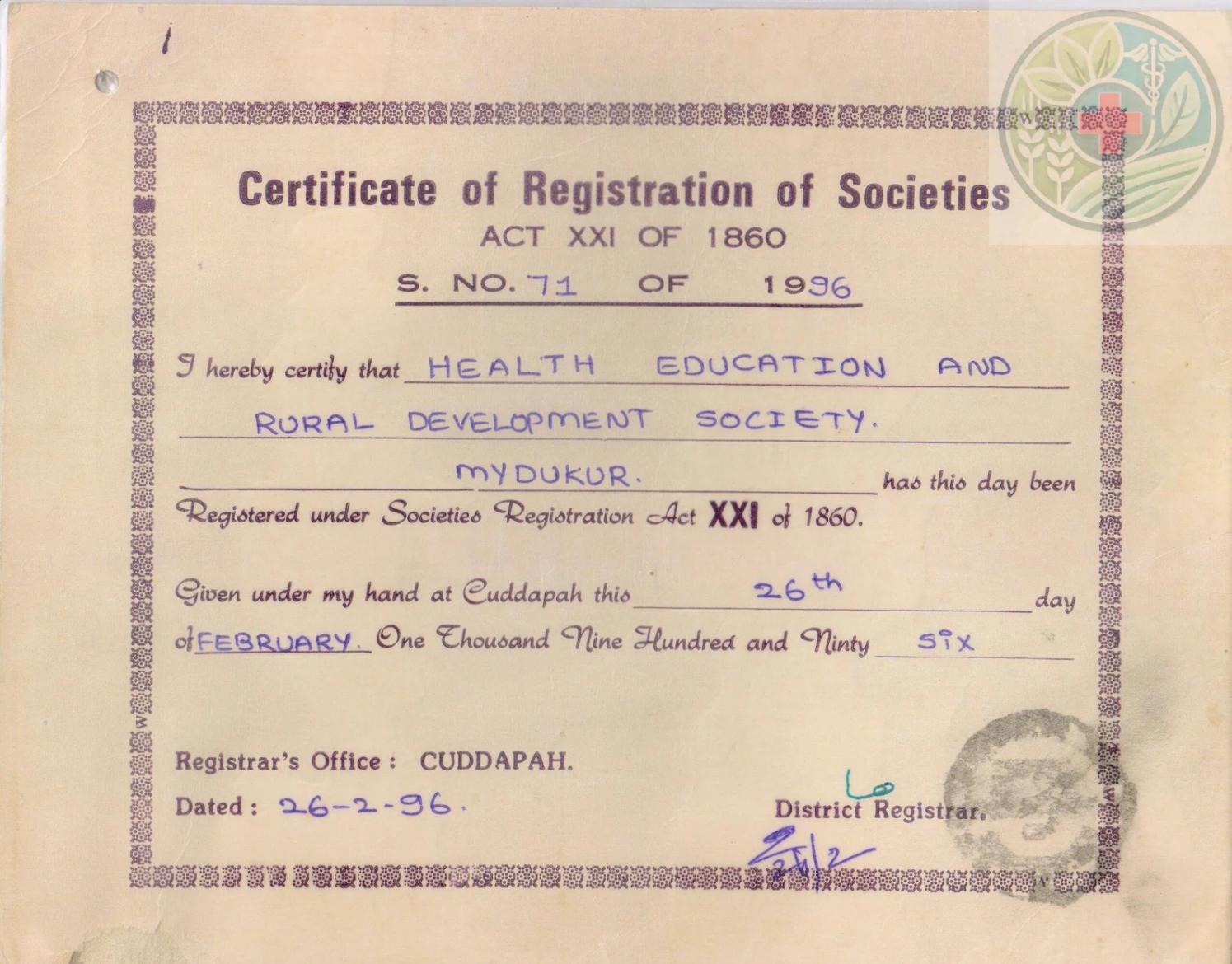 Society Registration Certificate